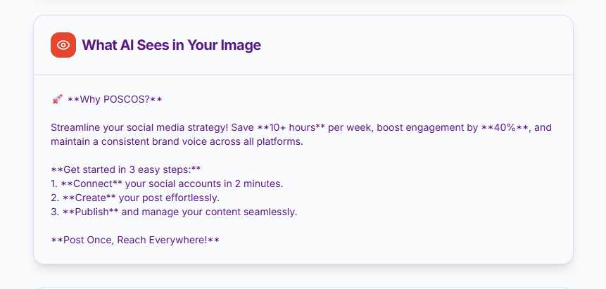 AI analyzes your images and generates post content. Review what AI sees in your images.